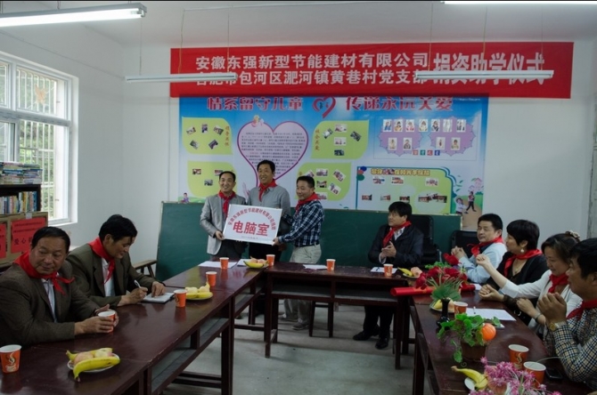 在捐資儀式上,董事長倪修倫親手將十臺(tái)價(jià)值三萬余元電腦,交給了涼亭小學(xué)校長手上。董事長說,作為一個(gè)成熟的企業(yè)來說,有責(zé)任關(guān)愛山區(qū)的教育事業(yè),今天的捐贈(zèng)活動(dòng)是關(guān)愛山區(qū)教育事業(yè)的第一步,今后要把關(guān)愛行動(dòng)持續(xù)下去。總經(jīng)理深情的說,今天回到家鄉(xiāng),回到母校,倍感親切,我懷著感恩的心,報(bào)答家鄉(xiāng),報(bào)答母校。合肥市包河區(qū)淝河鎮(zhèn)黃巷村黨總支也向涼亭小學(xué)捐贈(zèng)了電腦操作臺(tái),書記黃帥在捐贈(zèng)儀式上作了講話。